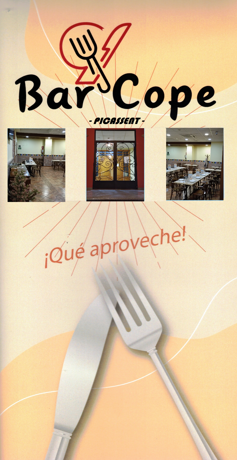 ¡Bienvenidos! a Bar Cope, donde nos especializamos en deliciosos almuerzos, tapas, bocadillos, hamburguesas y riquísimos postres. ¡Donde ofrecemos productos que satisfacen a nuestros clientes!.